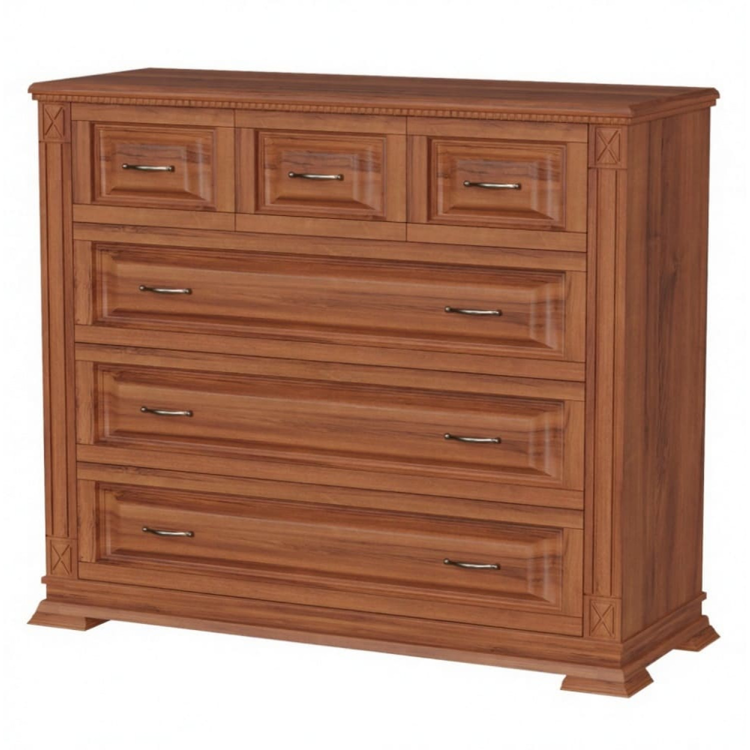 Деревянный комод Верди 120 выполнен из массива сосны,в данной модели вы можете самостоятельно указать цвет и материал,выбрав соответствующую опцию.
