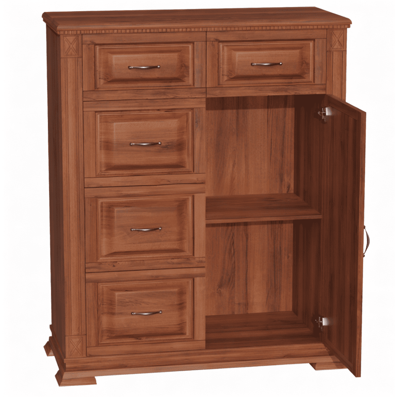 Деревянный комод Верди 155 выполнен из массива сосны,в данной модели вы можете самостоятельно указать цвет и материал,выбрав соответствующую опцию.
