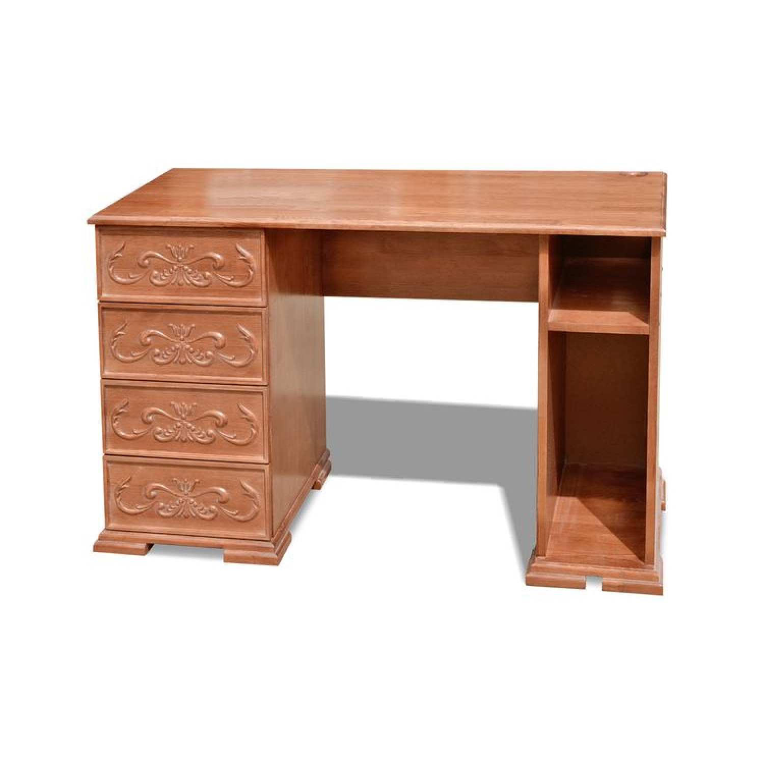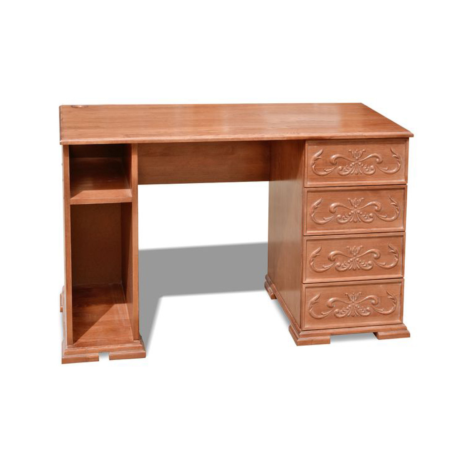 Письменный стол №24 выполнен из массива сосны,в данной модели вы можете самостоятельно указать цвет и выбрать материал,выбрав соответствующую опцию.