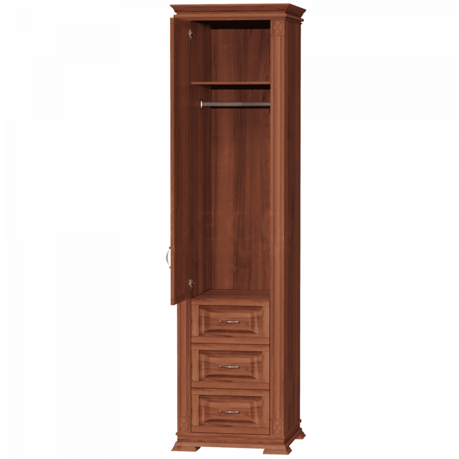 Деревянный шкаф Верди 114 выполнен из массива сосны,в данной модели вы можете самостоятельно указать цвет и материал,выбрав соответствующую опцию.