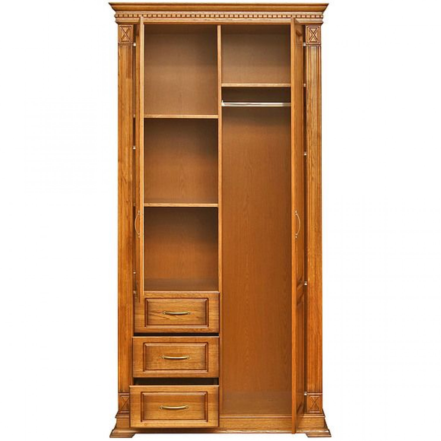 Деревянный шкаф Верди 318 модель 2 выполнен из массива сосны,в данной модели вы можете самостоятельно указать цвет и материал,выбрав соответствующую опцию.